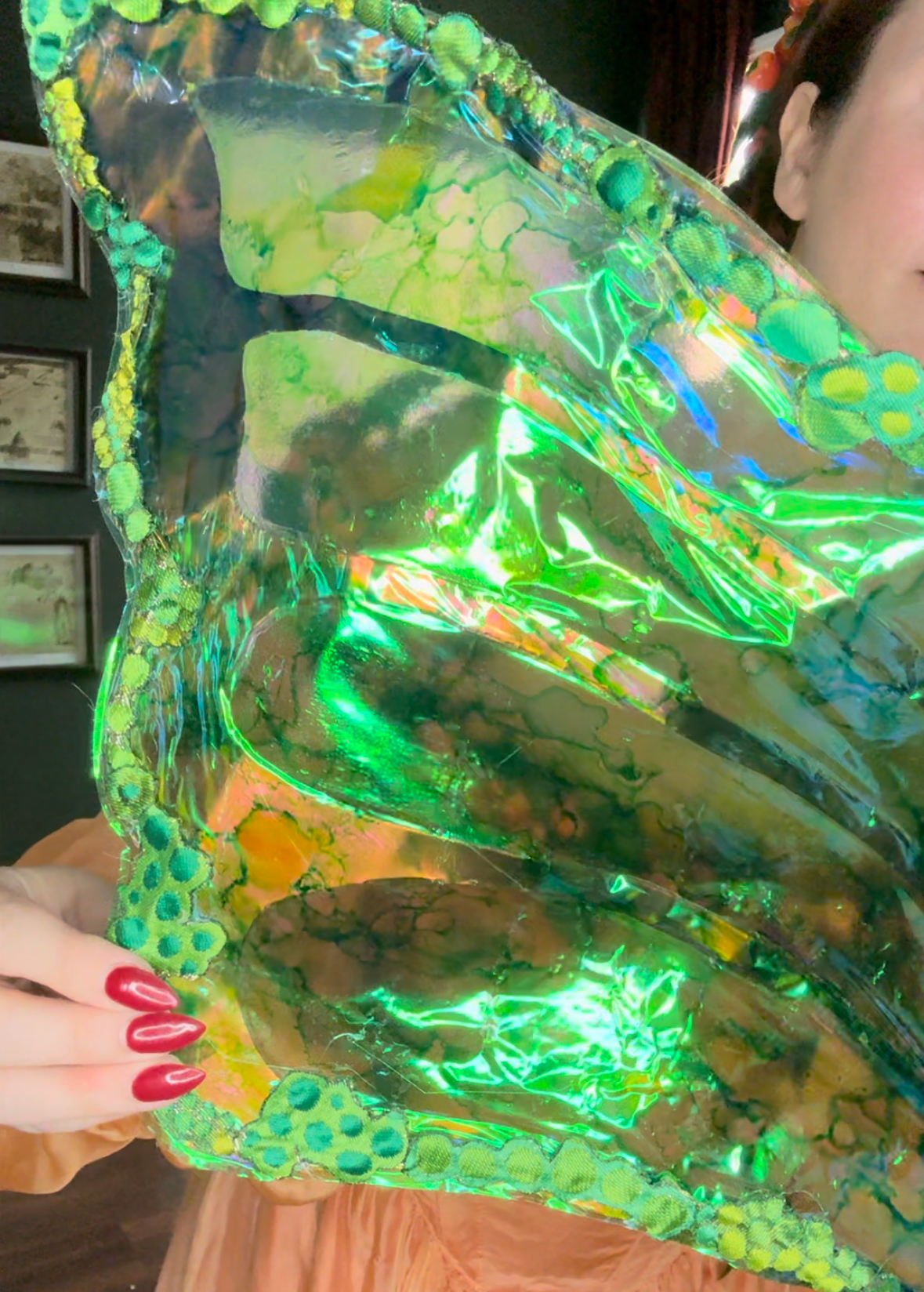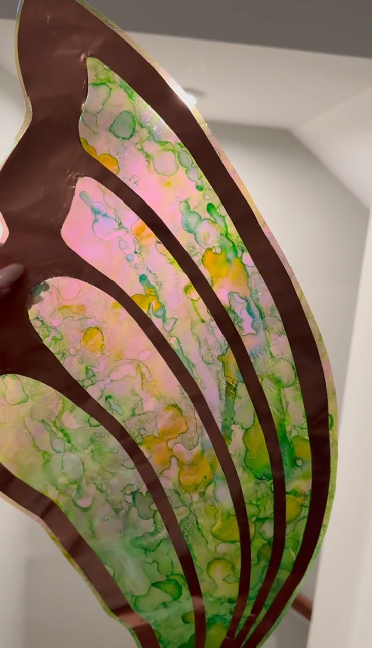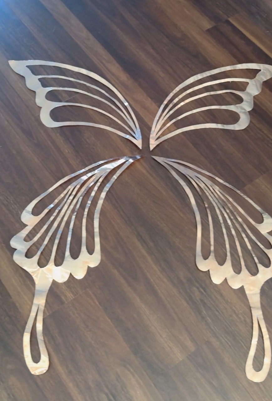 NOTE! At this point, if I could redo this project, I would’ve included some 14 gauge wire in some of the wing veins. And possible use little dabs of hot glue to hold them in place? I’m not sure how I’d do this yet though…I most definitely would added the wire along the outside perimeter at this stage. I had glue on the outside at the end and it would’ve been more secure for it to be sandwiched inside the Heat’n bond layers.