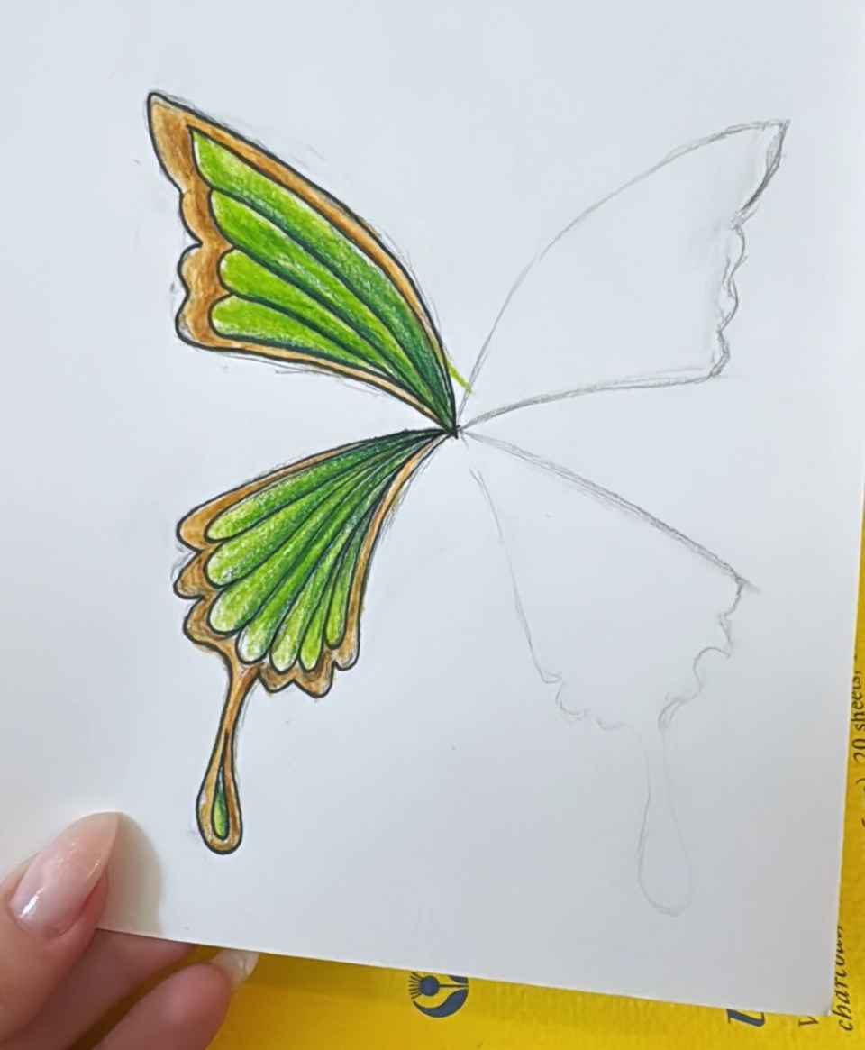 I started by looking for other tutorials available online, and although there were many different ones, I found a construction one and painting one from Fancy Fairy Wings and Things to be particularly helpful. So definitely go check those out! One thing they recommended (that I thought was really great advice) was to look to nature for design ideas, so as to avoid copying another artists’ designs. For mine, I found a photo of a green swallowtail and then sketched it to look a little more art nouveau in style: