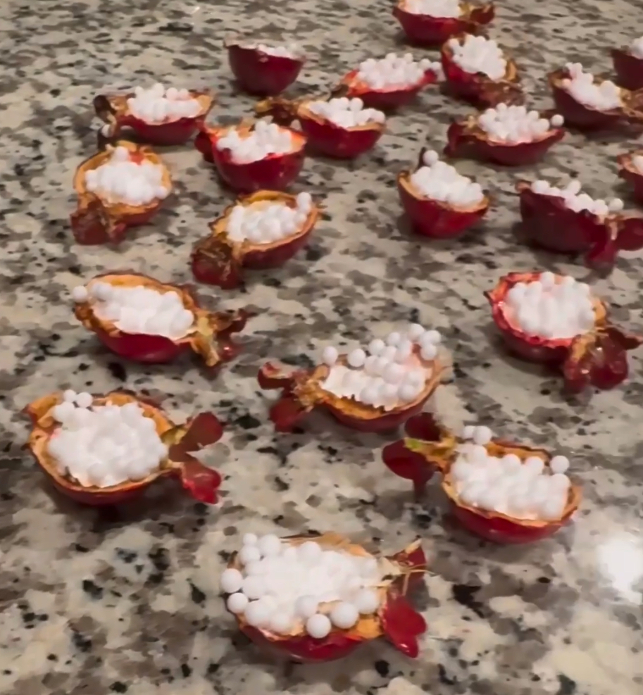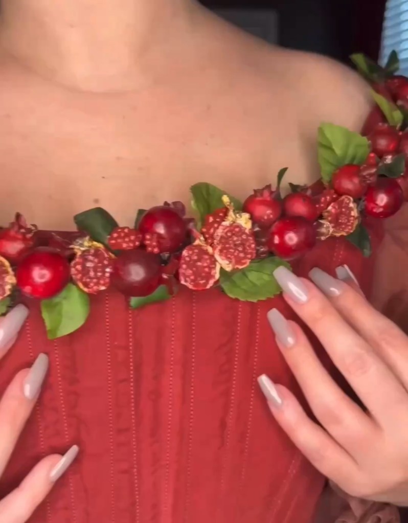 Materials Used: [with focus on assembling the pomegranates, not the dress]